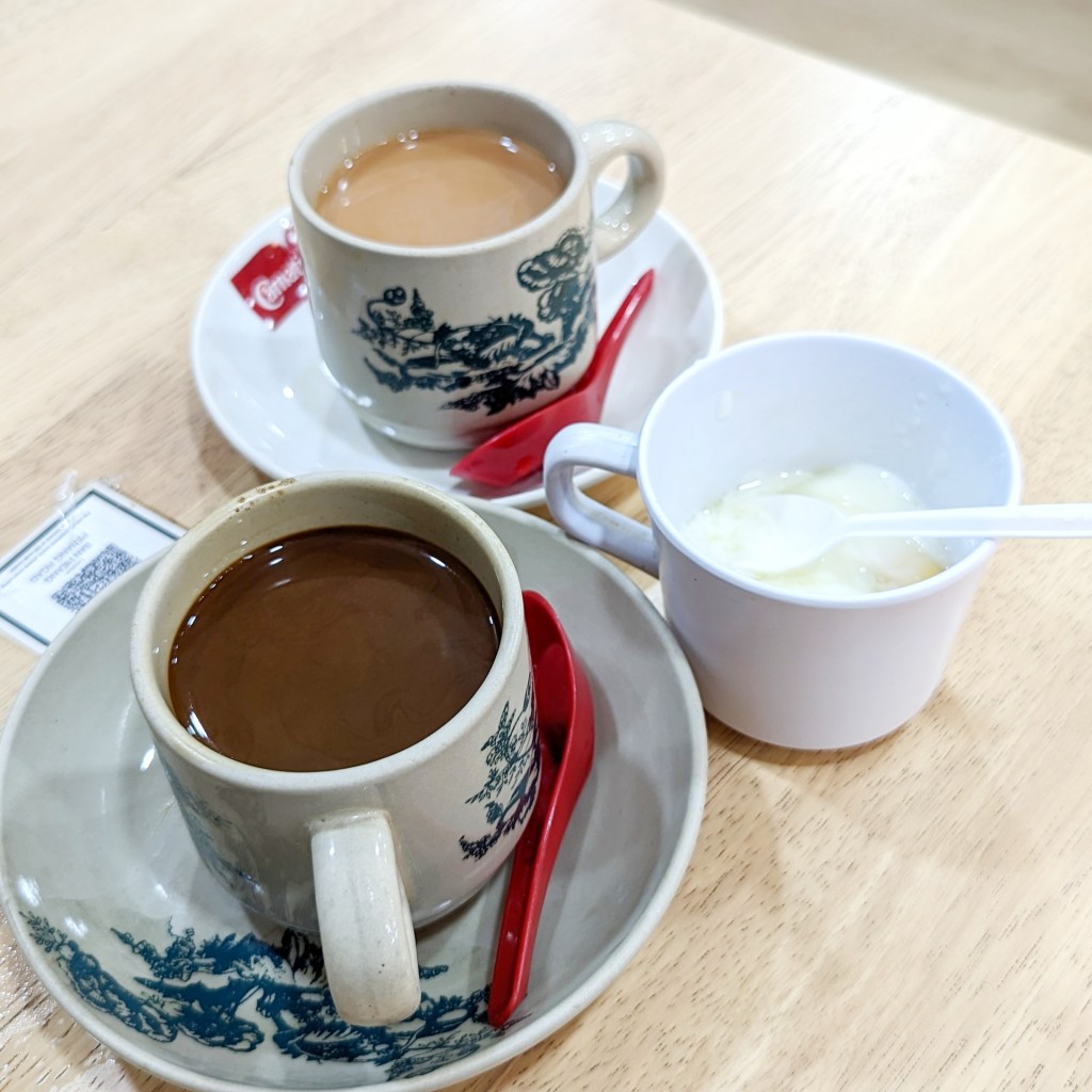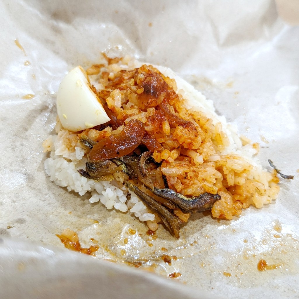 We ordered ourselves a kopi c, and teh c, some cups of soft boiled eggs and some nasi lemaks.
